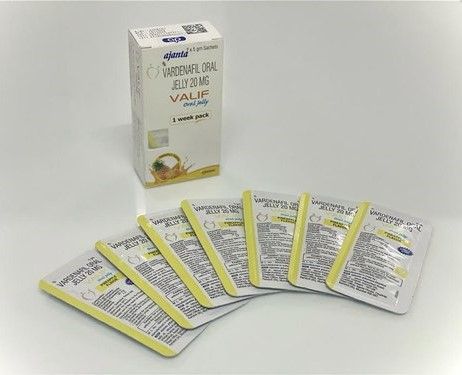 Желе Valif Oral Jelly (Валіф Орал Желі) показане для покращення якості та тривалості сексу у здорових чоловіків. Активною речовиною є варденафіл в дозуванні 20 мг, що дозволяє насолоджуватися інтимнимною близькістю протягом 6–8 годин.